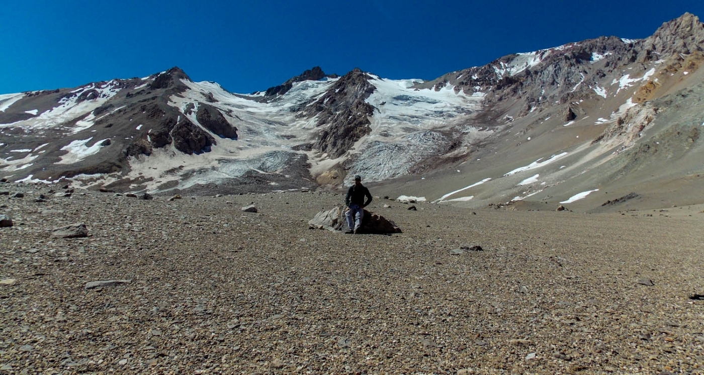 Diego en el campamento Las Oyetas con el graciar de fondo